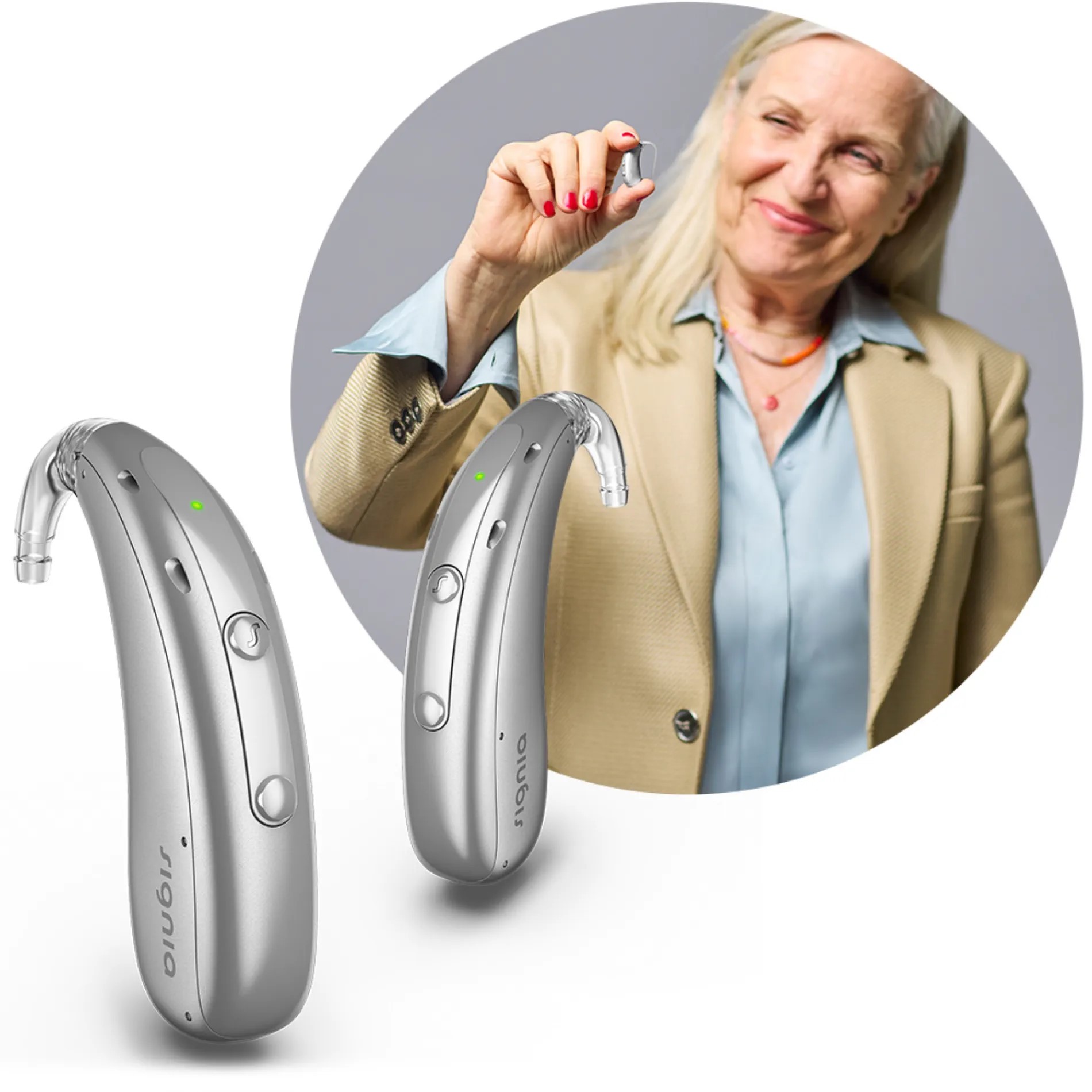 纤细型RIC助听器,拥有西嘉音聚平台实时对话增强功能,聚焦多人对话场景,助您融入沟通